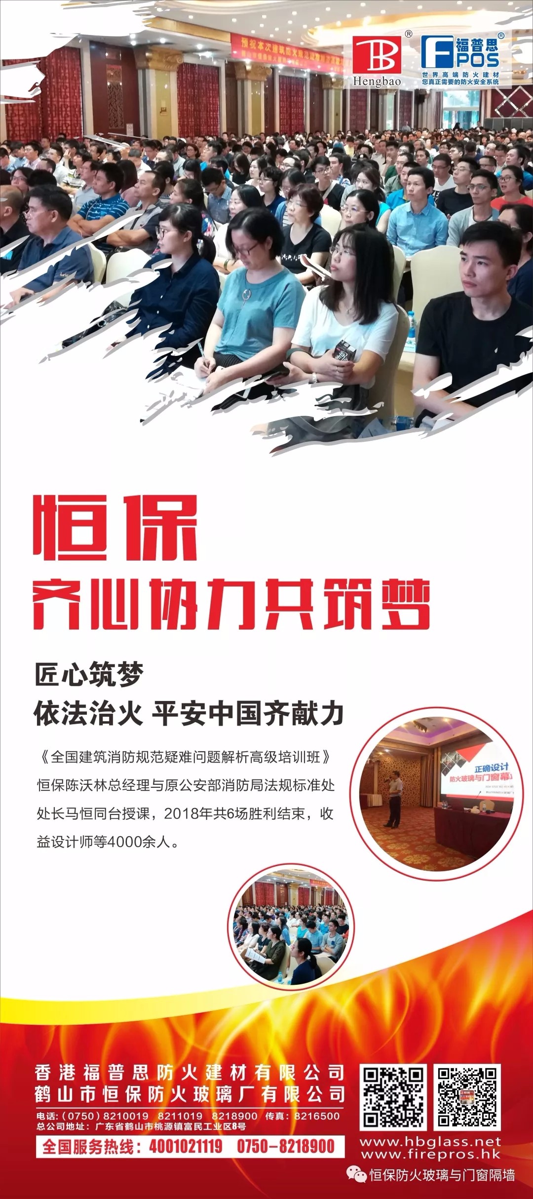 鶴山市恒保防火玻璃廠有限公司2018年與“中國建筑設(shè)計研究院人才培訓(xùn)中心”原公安消防局法制標(biāo)準(zhǔn)處處長馬恒一起分別廣東深圳、湖南長沙、湖北武漢、廣西南、山東濟南、廣東廣州,共同舉辦了6場《全省建筑消防規(guī)范疑難問題解析高級培訓(xùn)班》,所到之處深受到設(shè)計師們的歡迎,受益設(shè)計師達(dá)4000多人次。