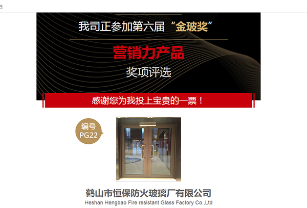 鶴山市恒保防火玻璃廠有限公司榮獲第六屆中國玻璃行業(yè)品牌評選營銷力產(chǎn)品獎